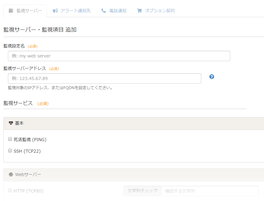 | 監視間隔 | 2分、3分、5分、10分、15分、30分、60分から選択できます。 |